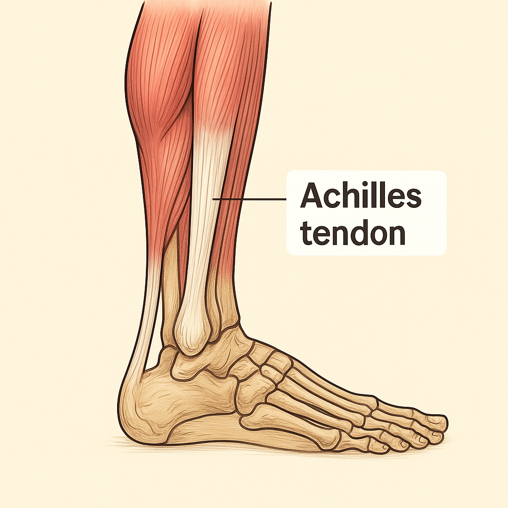 이 명칭은 해부학적으로 종아리의 비복근(gastrocnemius)과 가자미근(soleus)이 합쳐져서 발꿈치뼈(종골, calcaneus)에 붙는 강한 힘줄을 뜻합니다. 걷기, 뛰기, 점프, 계단 오르기 등 거의 모든 움직임에 관여하는 매우 중요한 조직이죠.