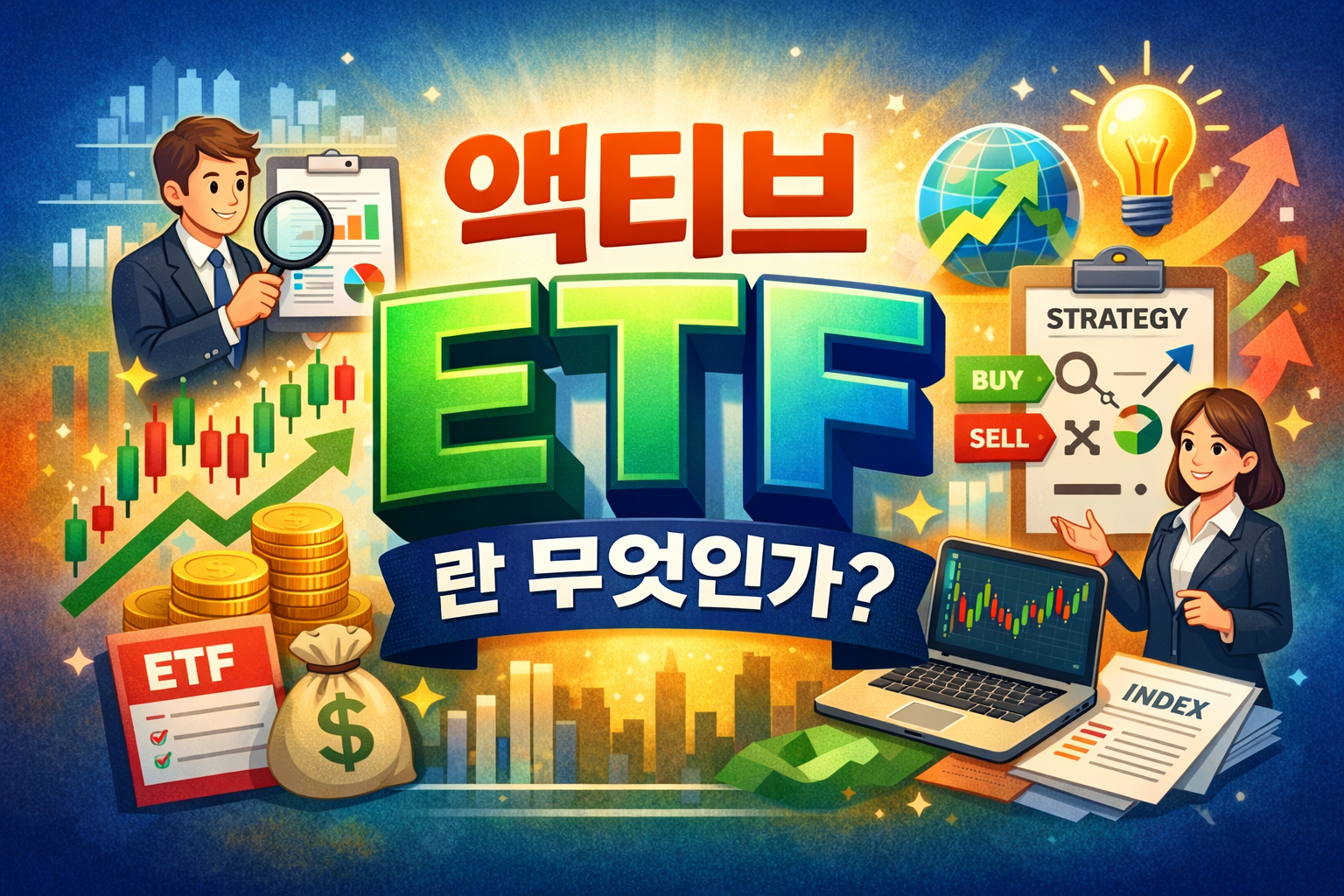 주식이나 ETF에 관심을 가지다 보면 액티브 ETF라는 말을 자주 보게 됩니다. 기존 ETF는 보통 특정 지수를 그대로 따라가는 상품으로 알려져 있는데, 액티브 ETF는 여기에 조금 다른 개념이 들어갑니다. 단순히 “지수를 따라가는 ETF가 아니라, 운용사가 더 적극적으로 종목을 고르고 비중을 조절하는 ETF라고 볼 수 있습니다. 그렇다면 액티브 ETF는 정확히 무엇이고, 일반 ETF와는 무엇이 다를까요? 이번 글에서는 액티브 ETF의 뜻, 패시브 ETF와의 차이, 장단점, 투자할 때 체크할 점까지 차근차근 정리해보겠습니다.