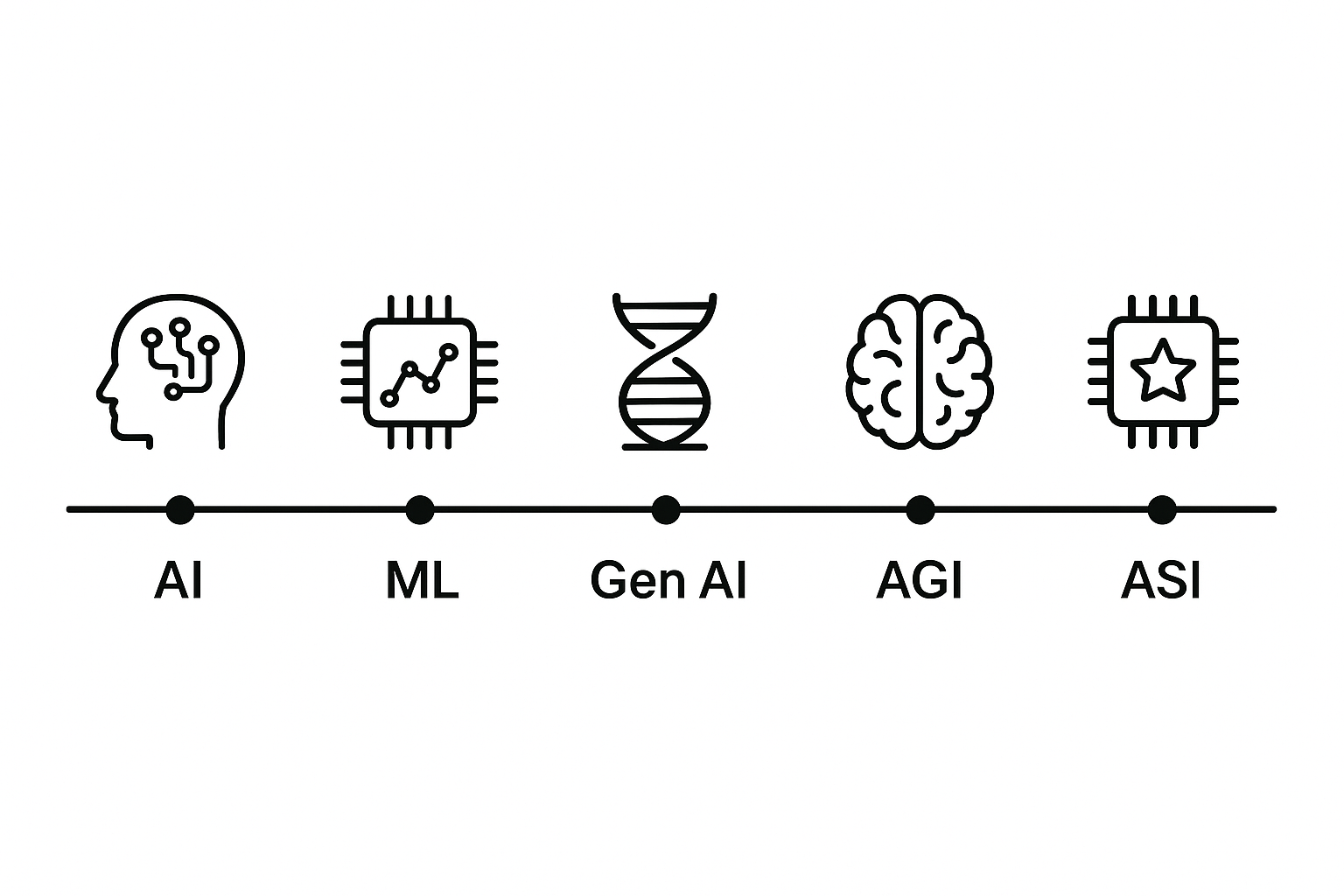 요즘 “AI 혁명”이라는 말이 흔해졌지만, 인공지능은 갑자기 뿅 하고 나타난 기술이 아닙니다. 수십 년에 걸쳐 전통적 AI → 머신러닝/딥러닝 → 생성형 AI → 인공일반지능(AGI) → 인공초지능(ASI) 이라는 흐름 속에서 진화해 왔죠. 이 글에서는