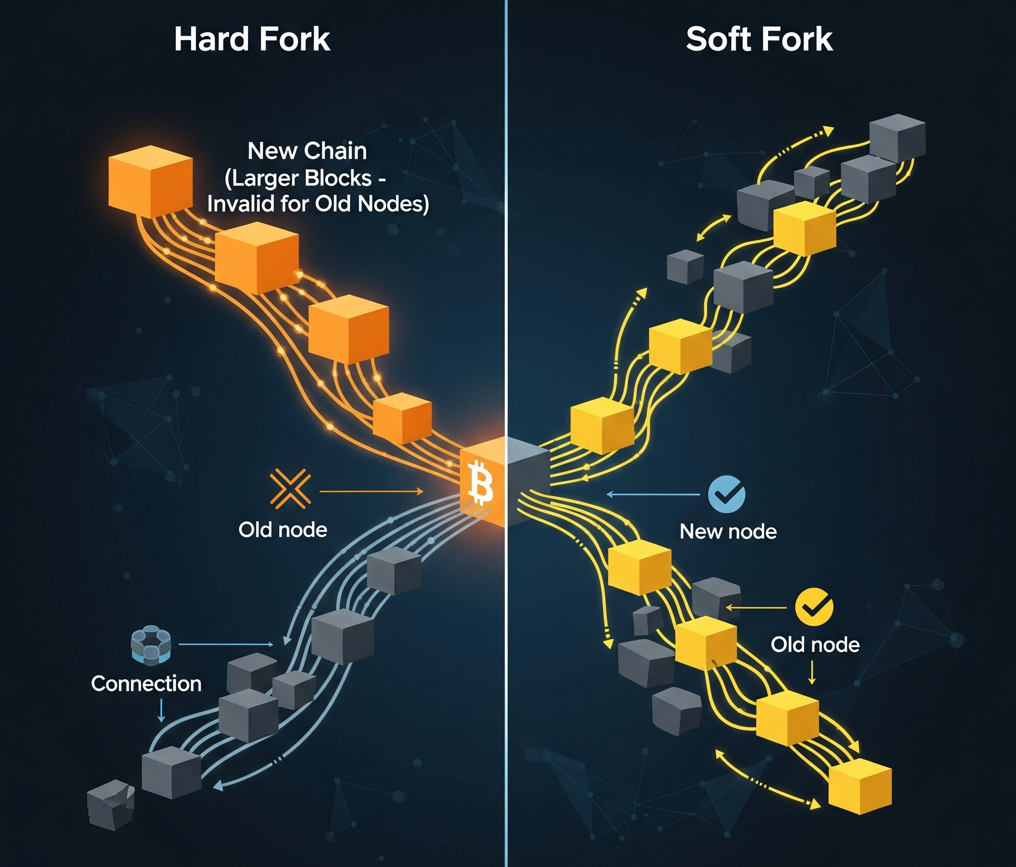 안녕하세요! 오늘은 암호화폐, 특히 비트코인의 하드포크(Hard Fork) 와 소프트포크(Soft Fork) 의 차이점과, 비트코인이 지금까지 어떻게 안전하게 발전해왔는지 그 비결을 소프트포크 3가지 사례와 함께 설명해 드리겠습니다.