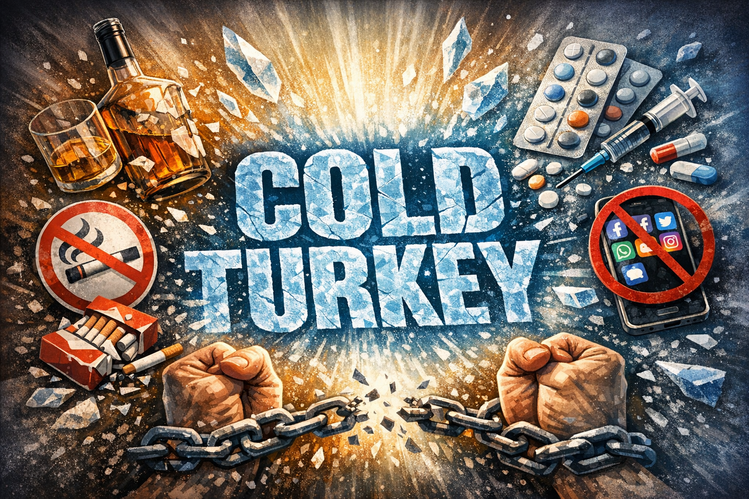 즉, 꼭 의학적 중독이 아니더라도 끊기 어렵던 습관을 한 번에 중단했다는 의미로 넓게 쓰입니다.