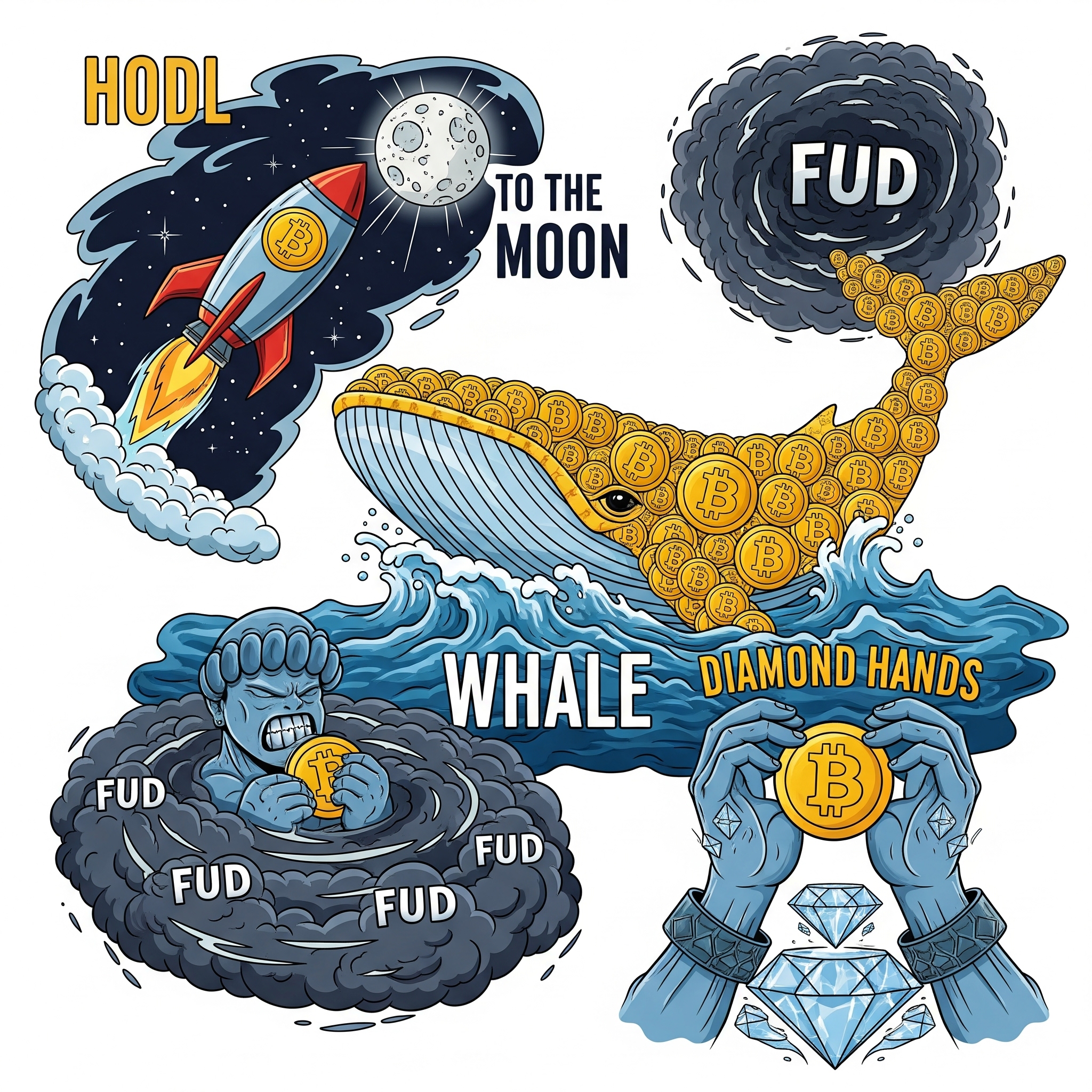 “이 코인은 이제 달까지 날아간다!” → 가격이 급등하거나, 급등할 것으로 기대될 때 쓰는 유쾌한 표현입니다.