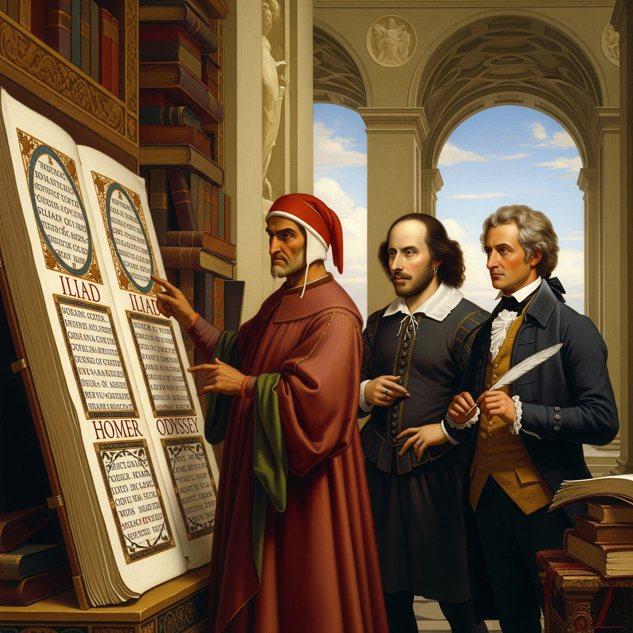서양의 거장 문인들은 하나같이 호메로스의 영향을 받았습니다. 단테의 『신곡』, 셰익스피어의 희곡들, 괴테의 『파우스트』 모두 호메로스적 서사 기법을 계승했습니다.