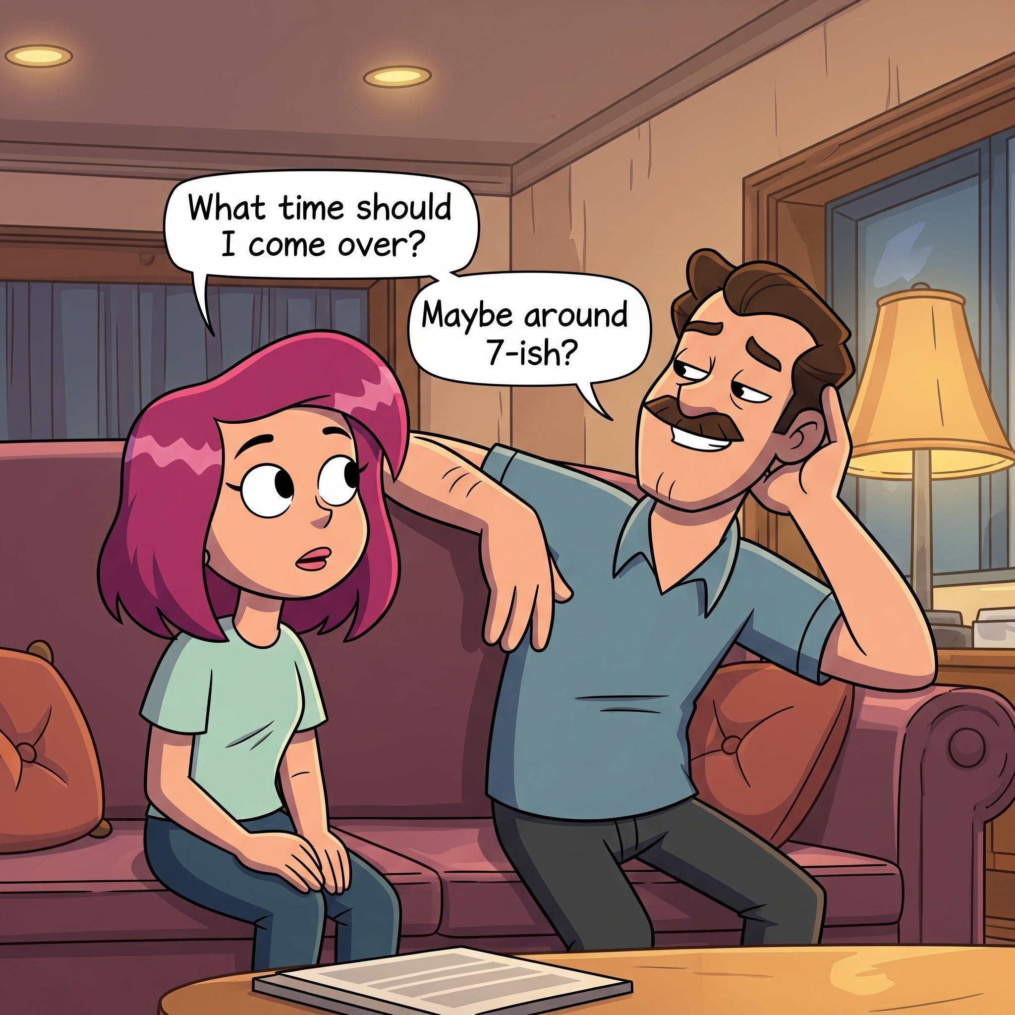 A: “What time should I come over?”