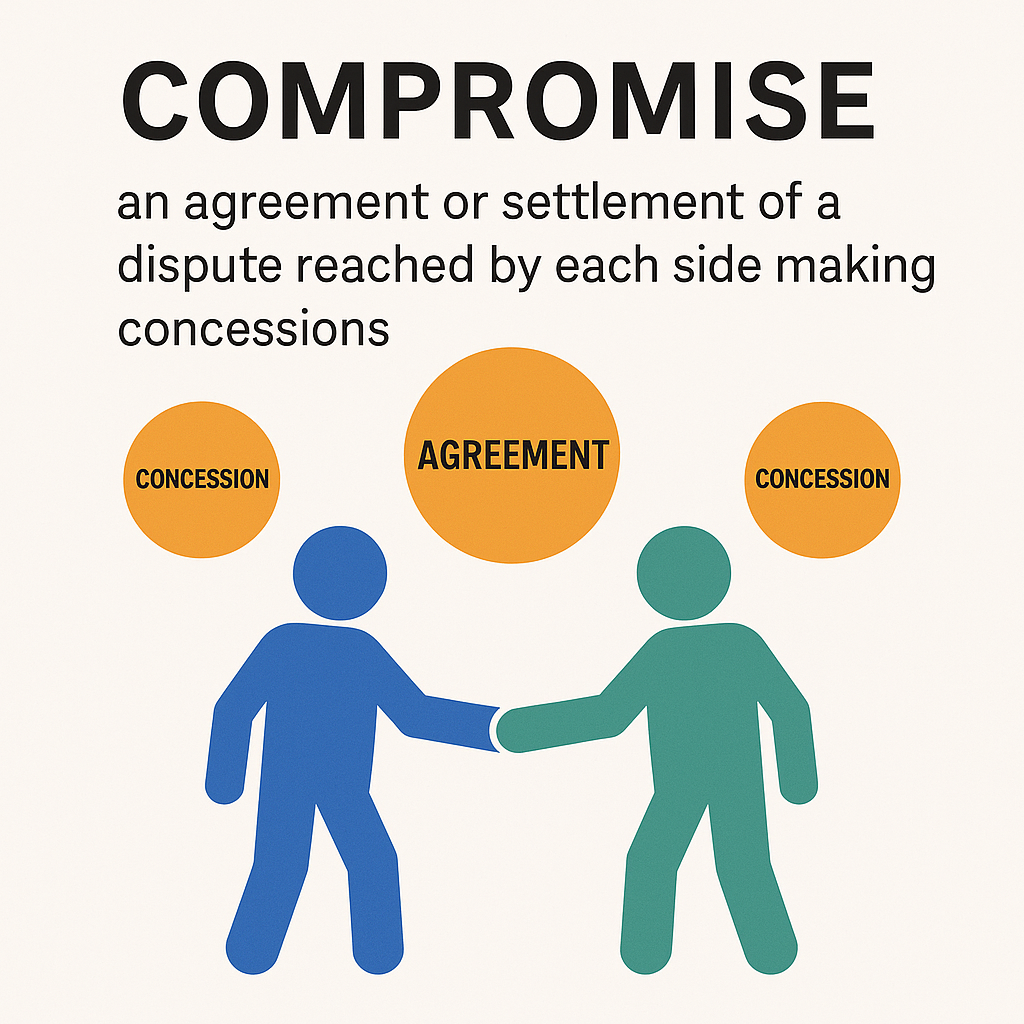 compromise의 어원은 라틴어 com-(함께) + promittere(약속하다)에서 유래합니다. 즉, "함께 어떤 약속을 하다"는 의미로, 본래는 중립적이거나 긍정적인 뜻을 담고 있었습니다.