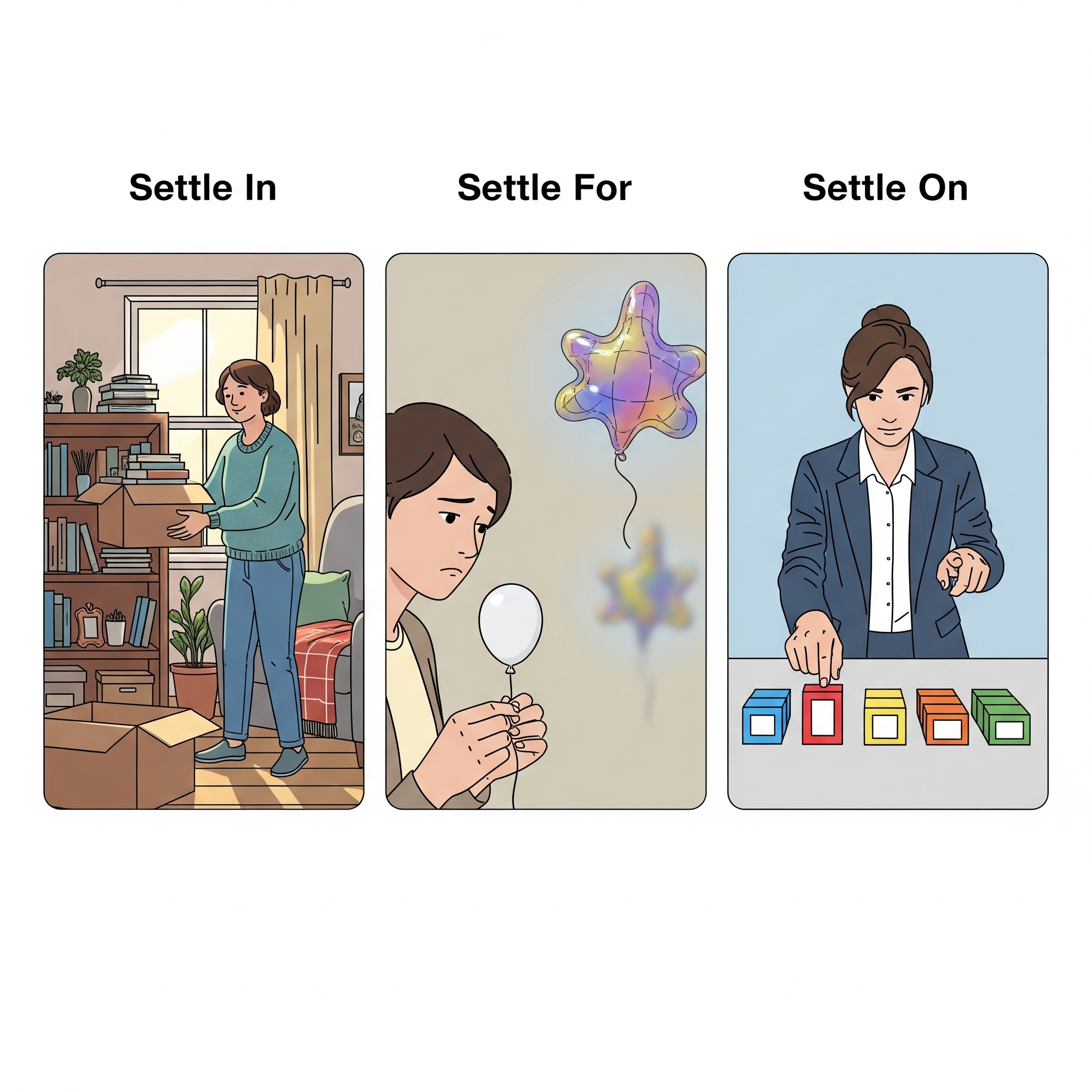 “settle in”은 적응, “settle on”은 결정, “settle for”는 차선책.