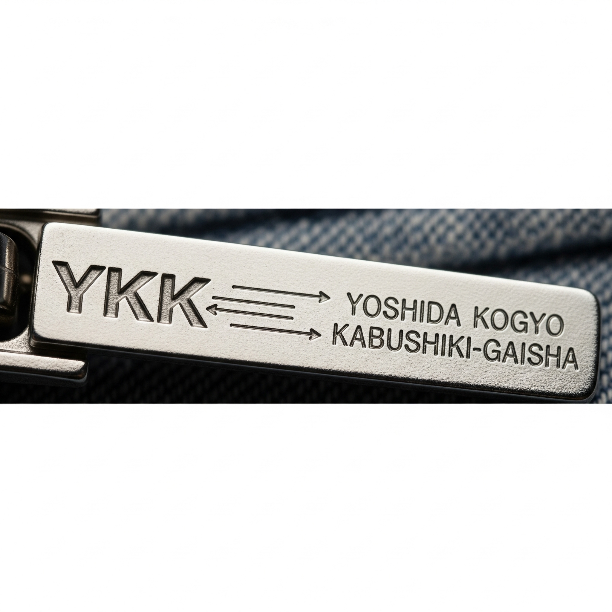 YKK는 Yoshida Kogyo Kabushiki-gaisha의 약자이며, 창립자 요시다 타다오(吉田忠雄)의 이름에서 비롯되었습니다. 일본에서 출발해 세계적인 지퍼 제조 기업으로 성장했으며, 현재 전 세계 지퍼 시장의 50% 이상을 차지하고 있죠.
