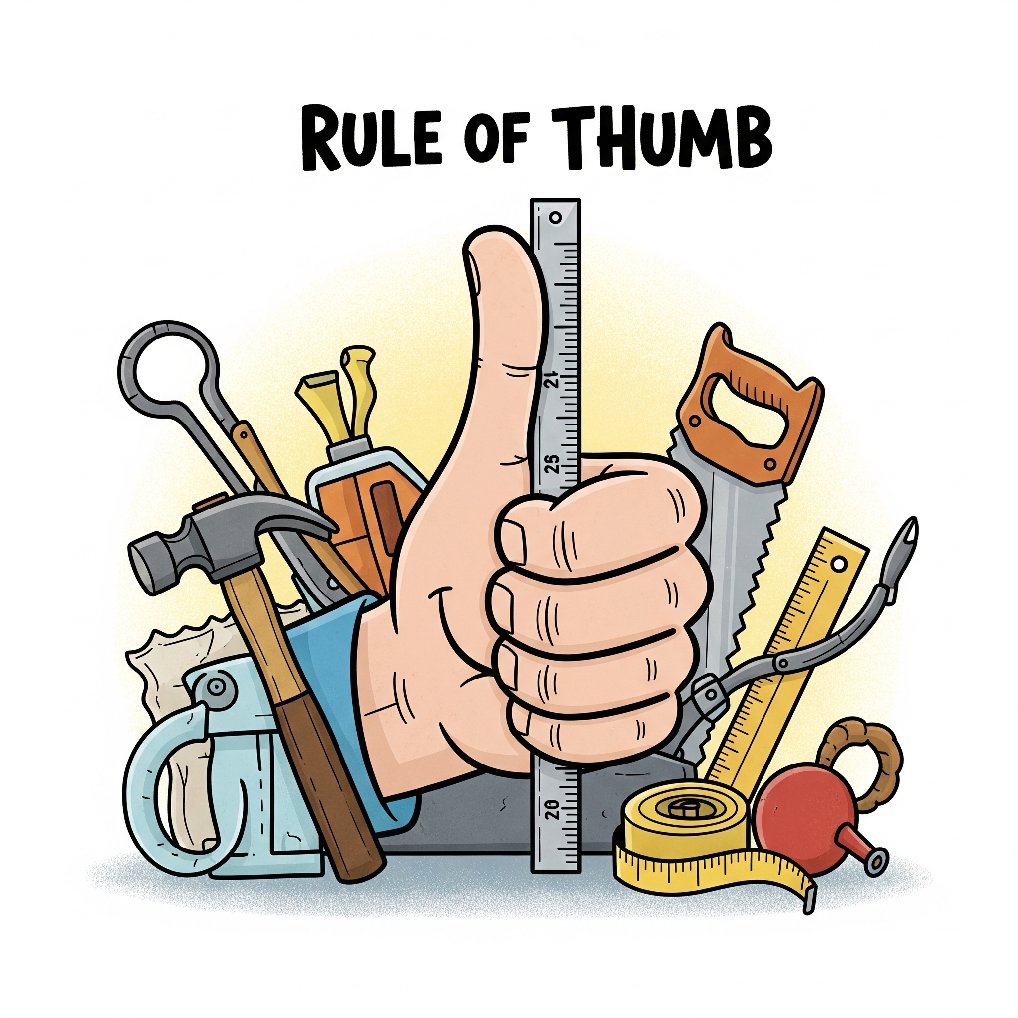 “rule of thumb” 은 영어에서 경험칙, 즉 오랜 경험에 기반한 대체적인 기준이나 방법을 뜻합니다. 즉, 아주 정확하거나 과학적인 계산이 아닌, 실용적이고 대략적인 판단 기준으로 쓰입니다.