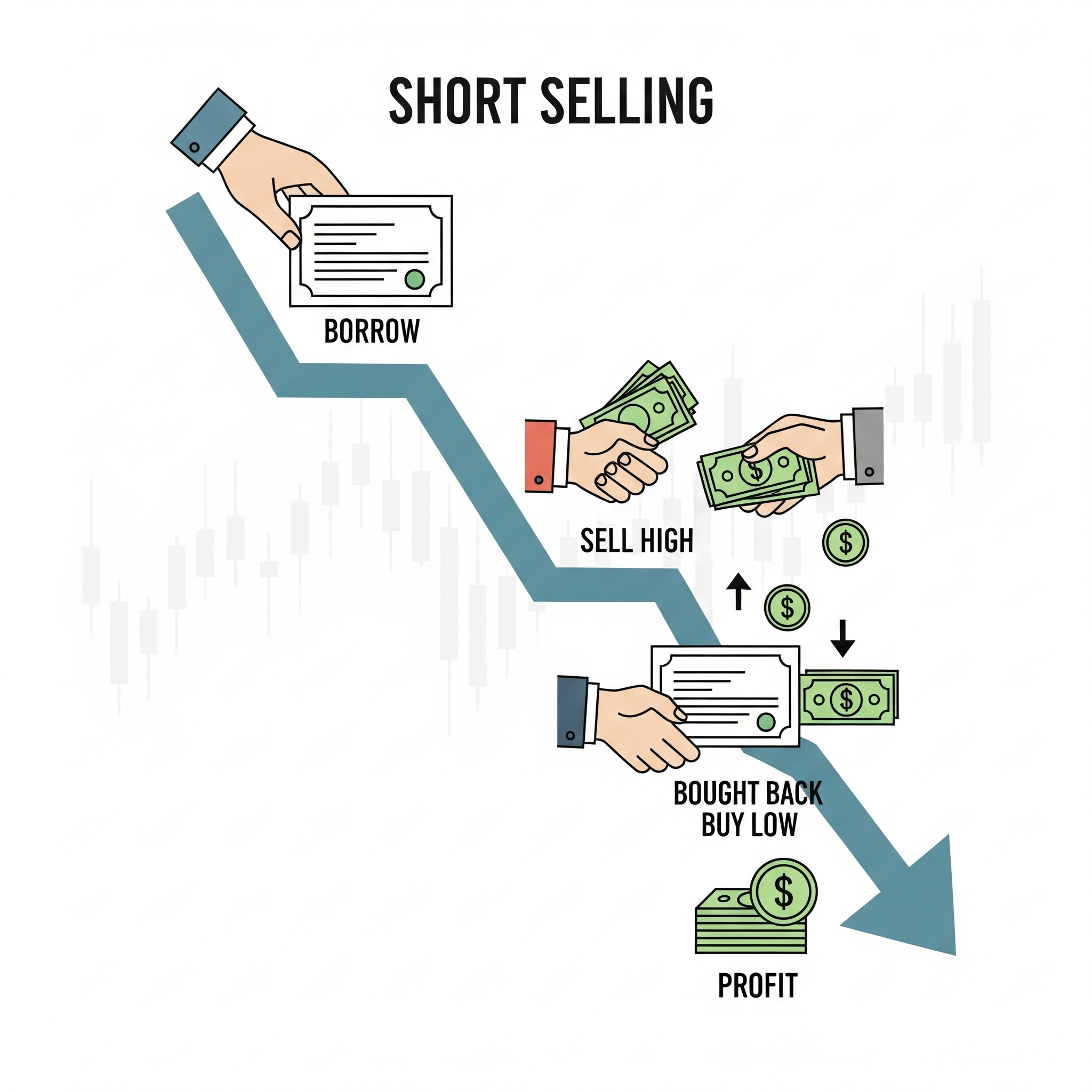 공매도는 실제로 보유하고 있지 않은 주식을 빌려서 먼저 파는 행위를 말합니다.이후 주가가 떨어지면 싼 값에 다시 사들여 빌린 주식을 갚고, 그 차익만큼 이익을 얻게 되는 방식입니다. 예시를 들어보겠습니다.