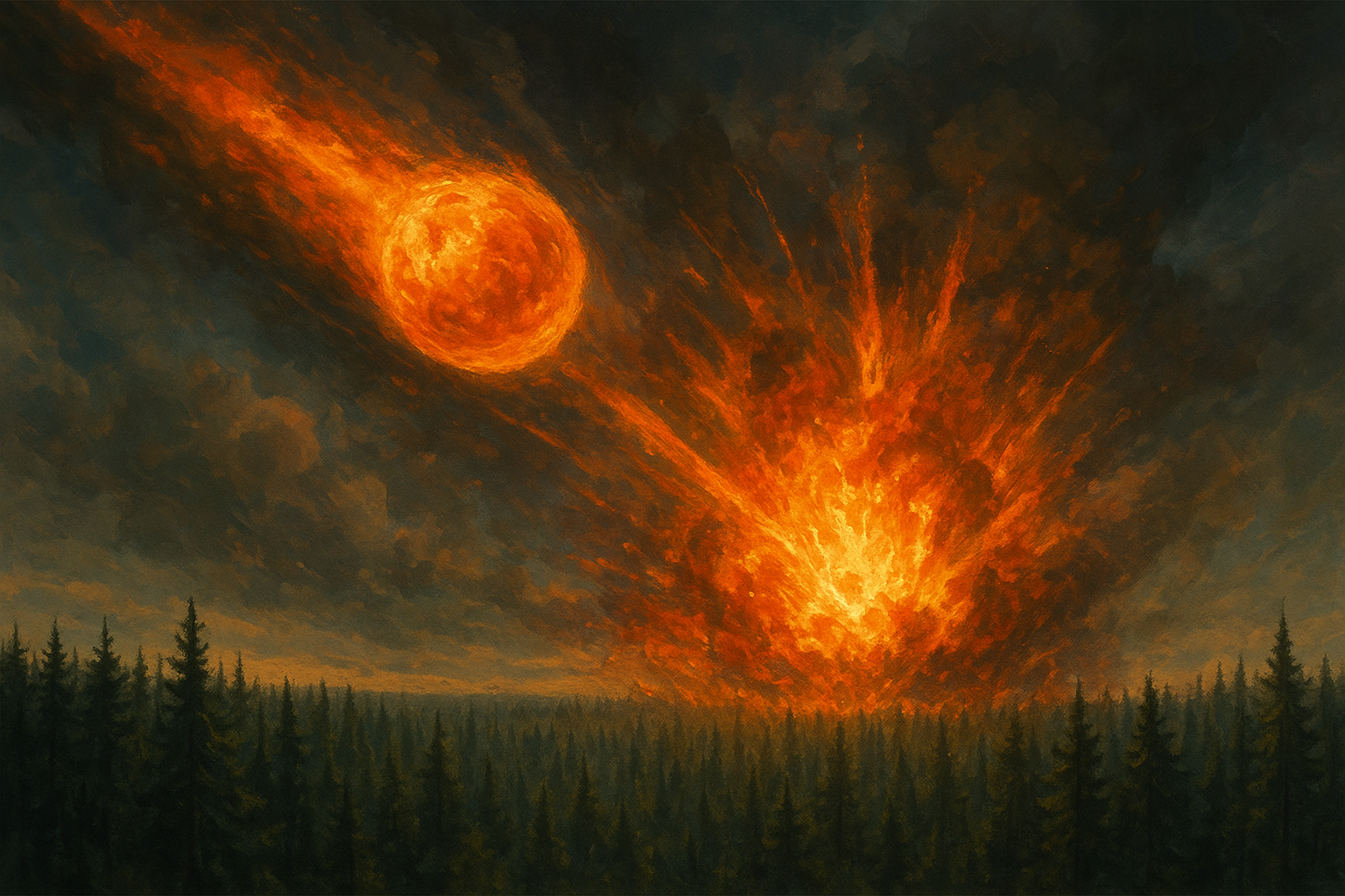 당시 퉁구스카 지역은 거의 사람이 살지 않는 황무지였고, 넓은 타이가(침엽수림)가 끝없이 펼쳐져 있었습니다. 1908년 6월 30일 오전 7시 17분경, 하늘에서 갑자기 거대한 불덩이가 나타나 시베리아 상공을 가르며 내려왔습니다. 목격자들은 하늘이 두 개로 갈라지는 듯한 장면과 엄청난 굉음을 기록으로 남겼습니다.