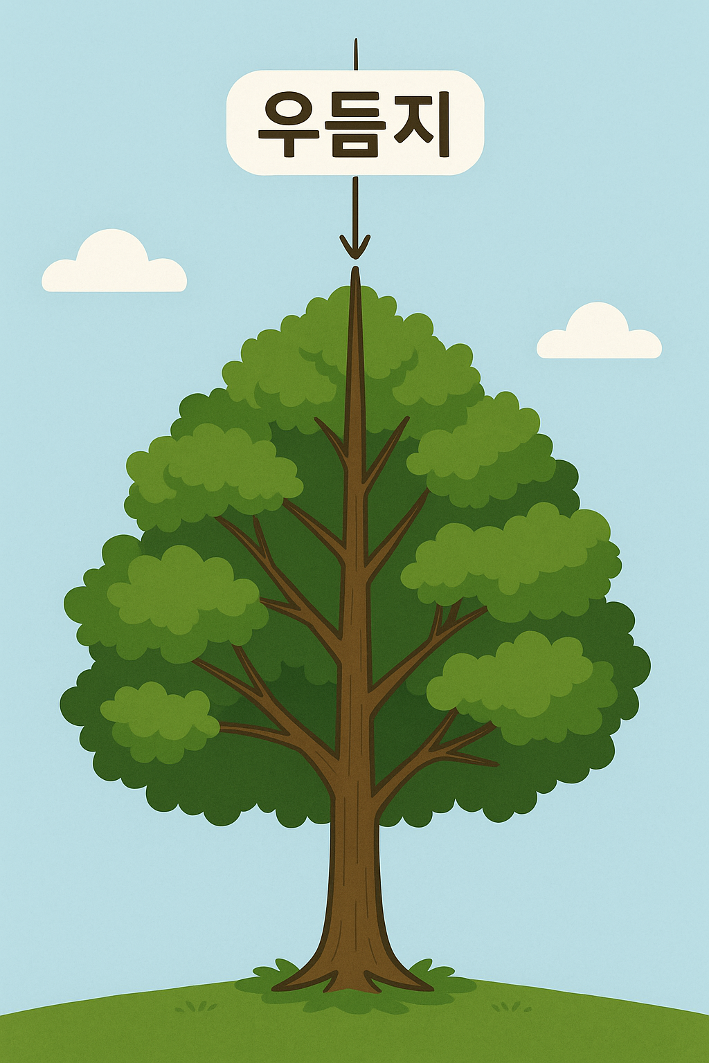 - 의미: 나무의 성장 방향을 이끄는 중심축이자, 가지치기에서 기준이 되는 중요한 부분입니다.