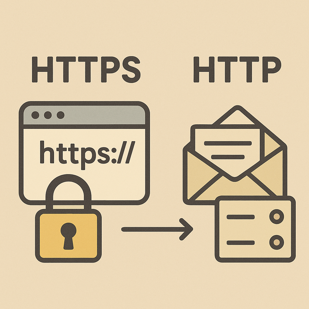 HTTPS = 잠금 장치가 달린 금고(암호화)에 편지를 넣고, 금고에는 공인된 회사 로고와 봉인 스티커(인증서)가 붙어 있는 상태로 배송하는 것