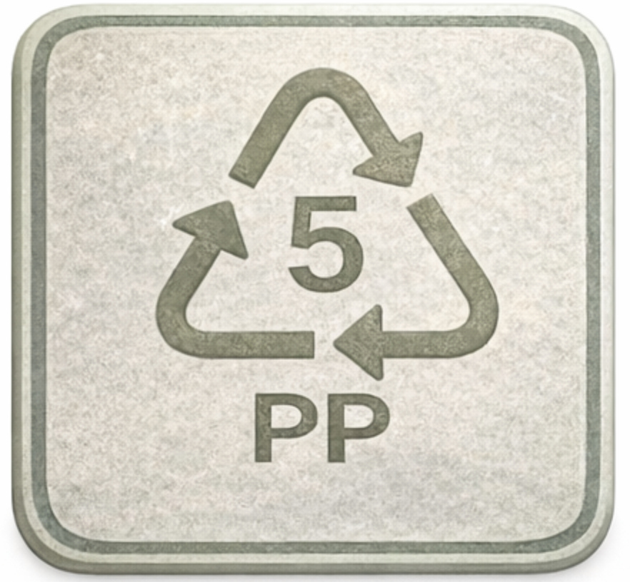 - 아래에 PET, HDPE, PP 같은 약자가 적혀 있음