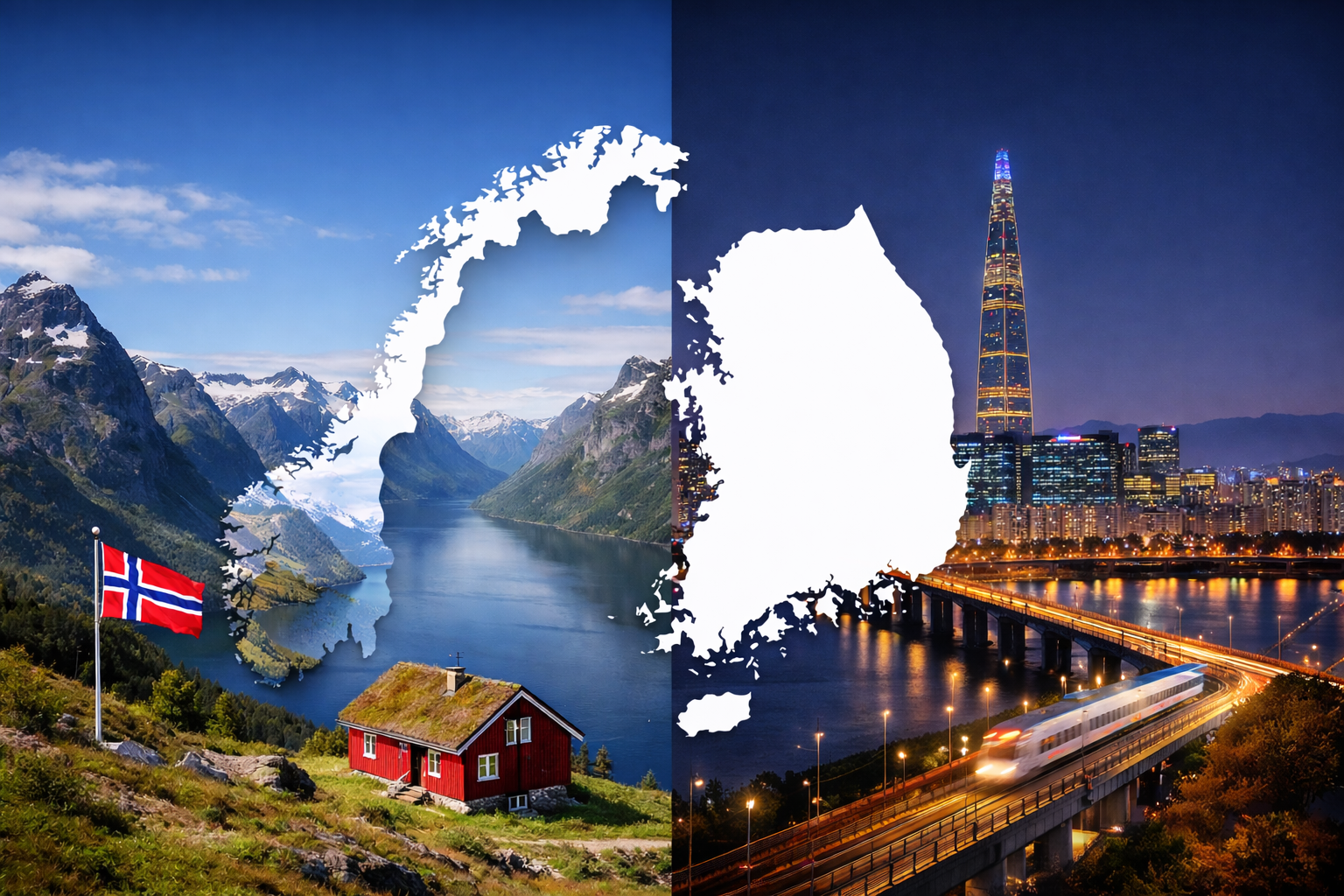🇳🇴 노르웨이 vs 🇰🇷 대한민국 면적과 인구로 보는 두 나라의 구조적 차이